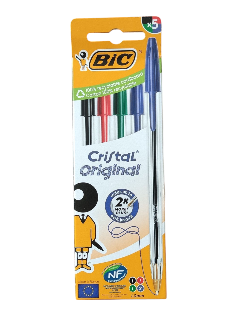 Boligrafo Bic Cristal medio caja 5 surti.